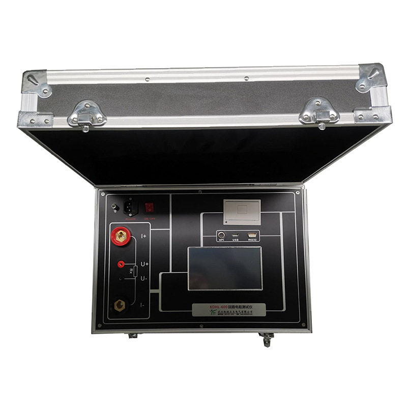 KDHL-600A 回路電阻測試儀是用于測量開關、斷路器、變壓器等設備的接觸電阻、回路電阻的專用測試設備。其采用典型的四線制測量法,通過輸出一個直流電流,施加于被測體的兩個端鈕之間,并測量電流流過被測體所產生的壓降,然后通過電壓和電流之比得出被測體的直流電阻。主要由恒流源、前置放大器、A/D轉換器、指示裝置等部分組成。