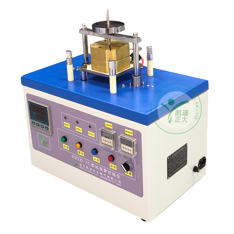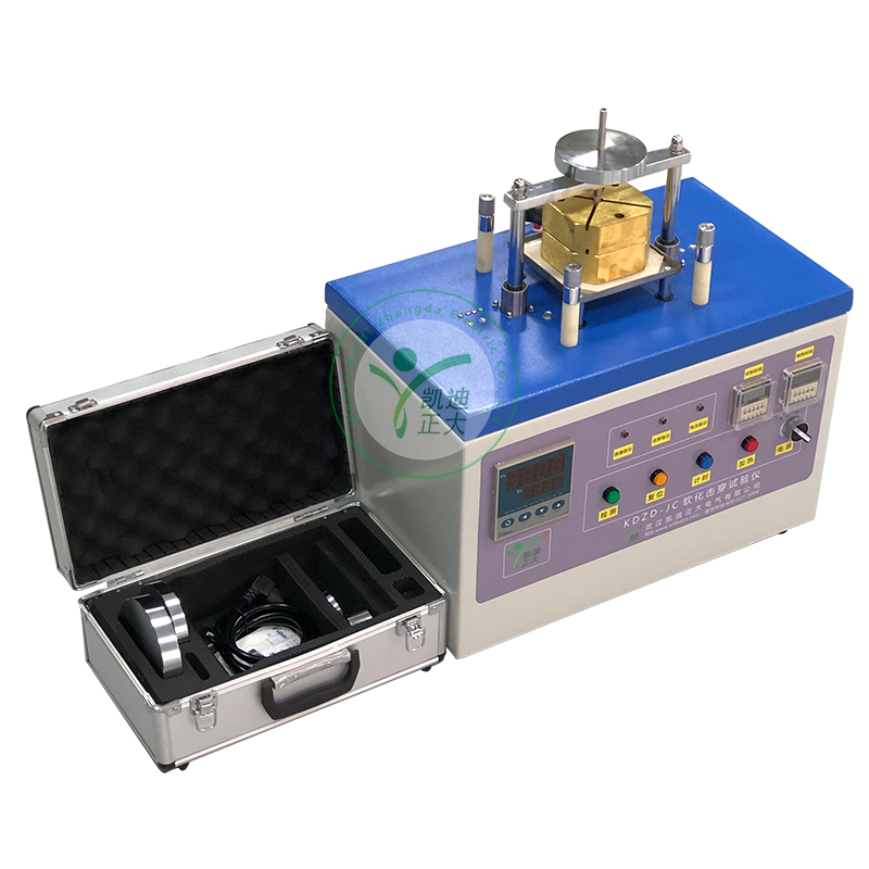 KDZD-JC軟化擊穿試驗(yàn)儀用于檢測(cè)3.00mm及以下漆包線在熱狀態(tài)下漆膜軟化后的絕緣性能,根據(jù)設(shè)定的預(yù)熱溫度、試驗(yàn)時(shí)間、儀器自動(dòng)完成對(duì)試樣的預(yù)加熱、加負(fù)荷、加試驗(yàn)電壓,達(dá)到試驗(yàn)時(shí)間或試樣被擊穿時(shí)即卸負(fù)荷,發(fā)出聲光信號(hào)。該儀器采用熱電偶測(cè)溫,智能溫度控制,能自動(dòng)調(diào)節(jié)和顯示試驗(yàn)溫度、測(cè)試部分采用集成電路,整個(gè)測(cè)試過(guò)程自動(dòng)完成。