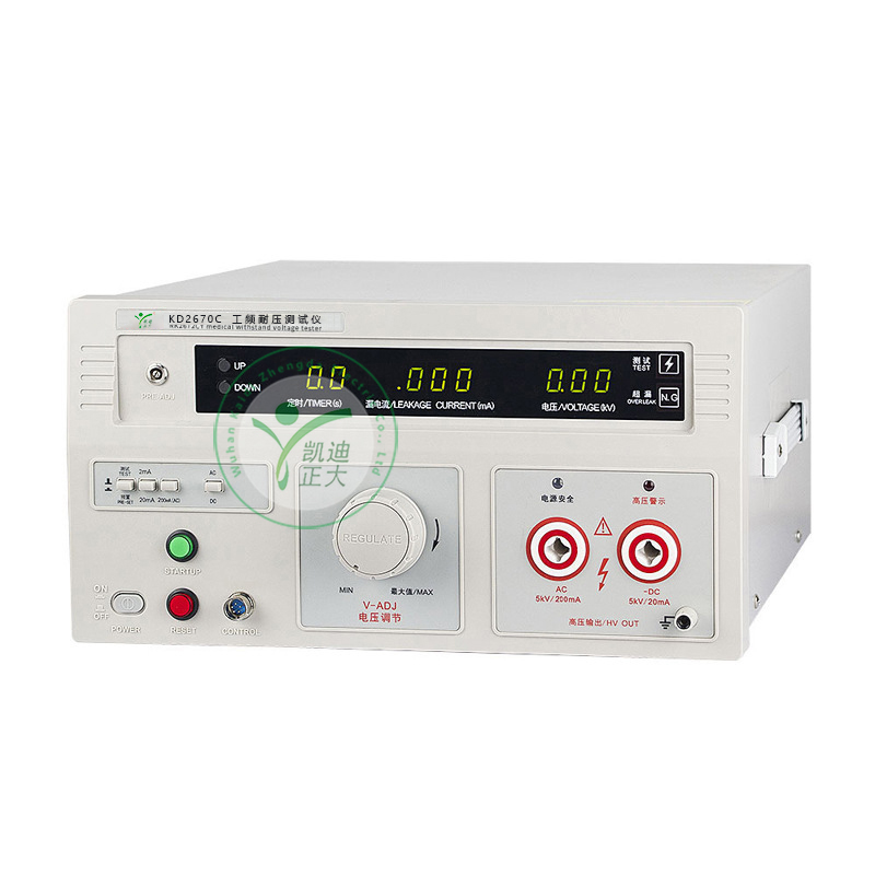 KD2670C工頻耐壓試儀是通用型的高壓測試儀器,廣泛用于電工器材、膠木電器、變壓器、電源線、電能表、電機(jī)、電源插頭座、電纜線等的耐壓測試,以及各種電子電氣產(chǎn)品的耐壓測試。