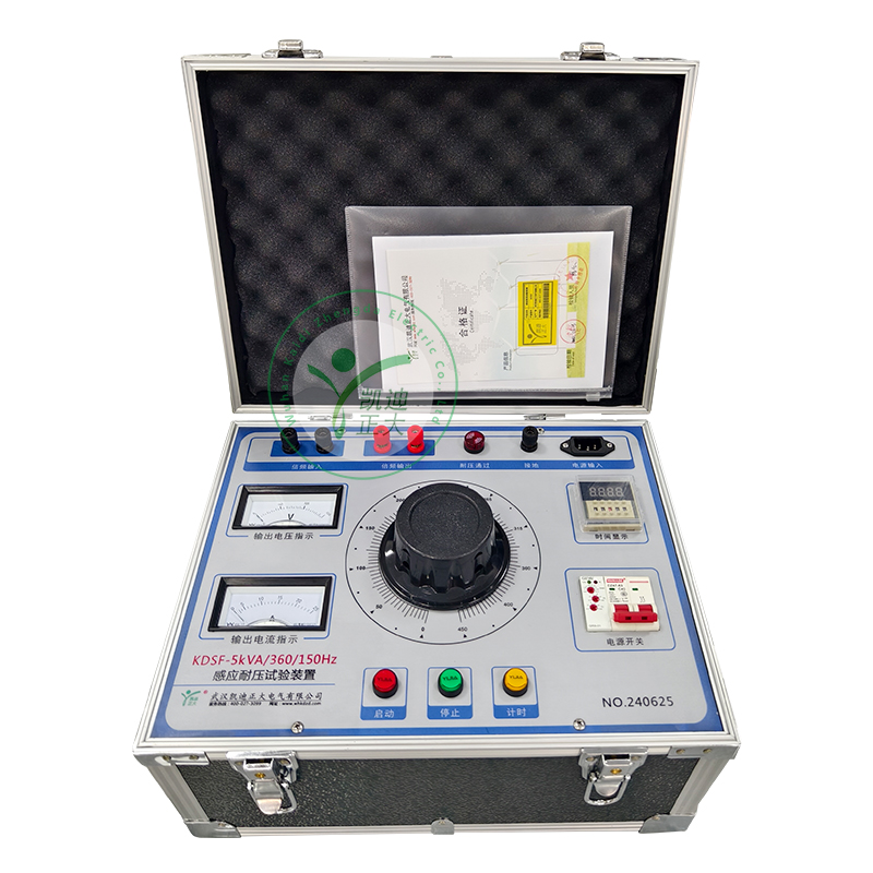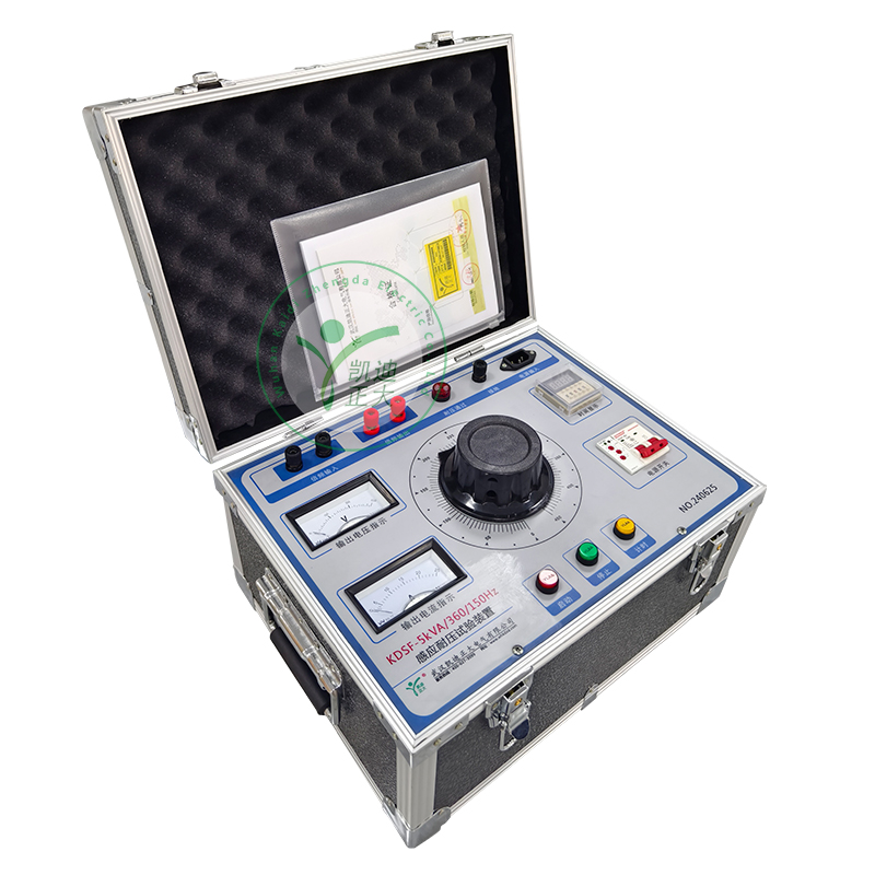 KDSF 感應(yīng)耐壓試驗裝置是利用磁路的飽和特性,取出諧波中分量最大的三次諧波電壓,作為發(fā)生器的電源,對感應(yīng)線圈式的電氣產(chǎn)品作匝間、段間、層間的倍頻、倍壓試驗;以考核線圈的絕緣強度、耐壓水平。