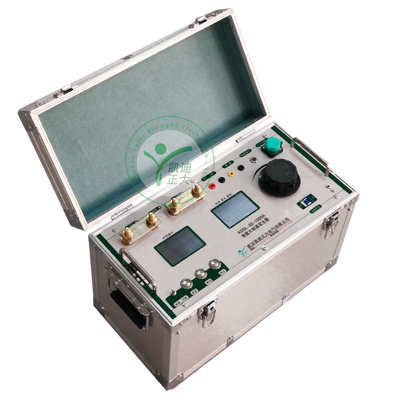 KDSL-82-1000A智能大電流發生器,它集國內外同類產品的優點于一身,顯示采用彩色液晶屏,同時顯示一次電流,二次電流,電力互感器變比,極性的試驗。做電力一次通流試驗時能夠精確指示動作時間。