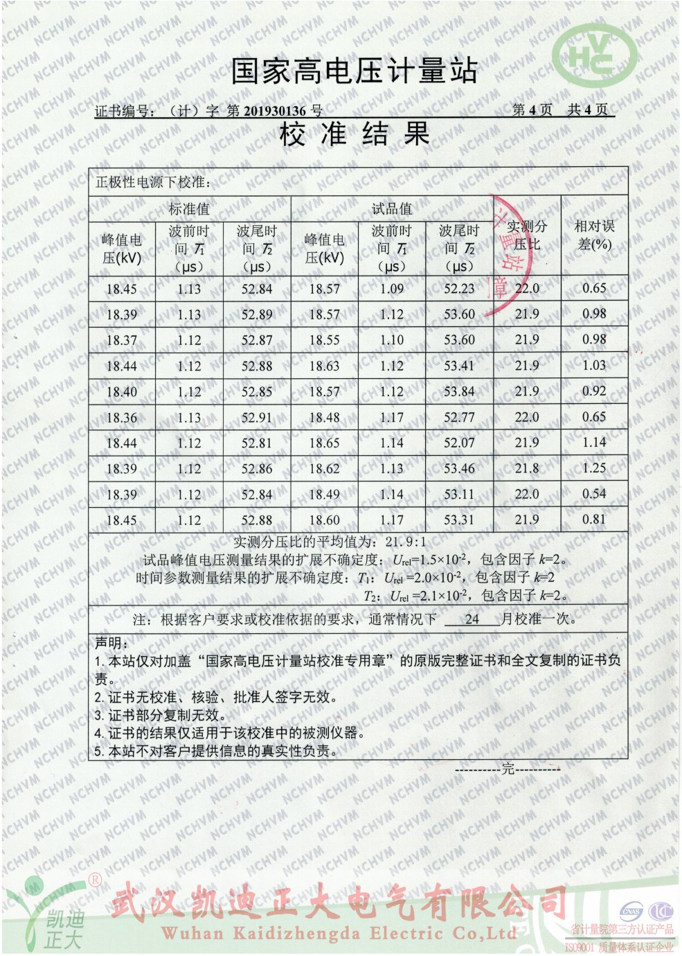 國家高電壓計量站校準證書-雷電沖擊電壓發生器