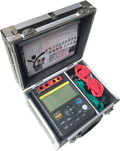 武漢凱迪正大電氣有限公司生產的KD300系列型智能數顯絕緣電阻測試儀采用嵌入式工業單片機實時操作系統,數字模擬指針與數字段碼顯示較好結合,KD300系列表具有多種電壓輸出等級(250V、500V、1000V、2500V、5000V、10000V)、容量大、抗干擾強、模擬指針與數字同步顯示、交直流兩用、操作簡單、自動計算各種絕緣指標(吸收比、極化指數)、各種測量結果具有防掉電功能等特點。是測量大容量變壓器、互感器、發電機、高壓電動機、電力電容、電力電纜、避雷器等絕緣電阻的理想測試儀器。