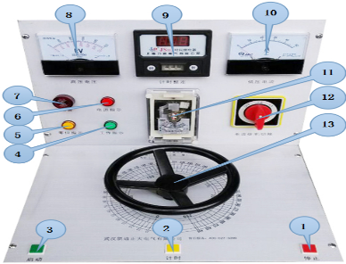 1、停止按鈕 2、計時開關(guān) 3、啟動按鈕 4、工作指示燈 5、零位指示燈