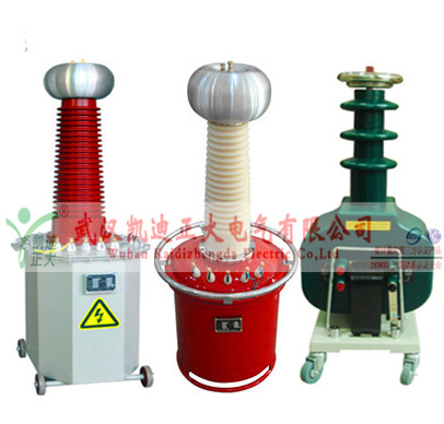 將工頻電源輸入操作箱(或操作臺),經自耦調壓器調節電壓輸入至試驗變壓器的初級繞組。根據電磁感應原理,在次級(高壓)繞組可獲得工頻高壓。此工頻高壓經高壓硅堆整流及電容濾波后可獲得直流高壓,其幅值是工頻高壓有效值的1.4倍。只不過在使用直流時應抽出短路桿,在使用交流時,插入短路桿。