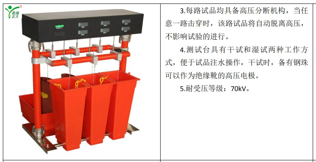 為了提高工作效率,一次可以同時進行6只試品的試驗,為避免重復試驗,采用高壓分斷專利技術,試驗過程中可以將擊穿的試品脫離高壓試驗系統,沒有擊穿的試品繼續試驗直到完成試驗。實時顯示高壓電壓、高壓電流、低壓電壓、低壓電流。時間及耐壓結果,顯示直觀明了。完善的過壓、過流保護,任意設定輸出電壓、高壓電。流上限、低壓電流上限和計時時間。自動進行耐壓試驗。試驗開始后,儀器自動合閘以國標要求升壓速度自動升壓,升至預定電壓開始計時并保持試驗電壓,時間到自動降壓至零并斷電,同時顯示各試品泄漏電流并自動保存試驗結果。過流保護;過壓保護;自定義時間、電壓、泄漏電流值。額定容量:5kVA。輸入電壓:AC220V±10%50Hz±1。試驗電壓:AC 0~50kV(絕緣介質:環氧樹脂)。測試數量:可同時測試6只。泄漏電流:0~12.0mA。