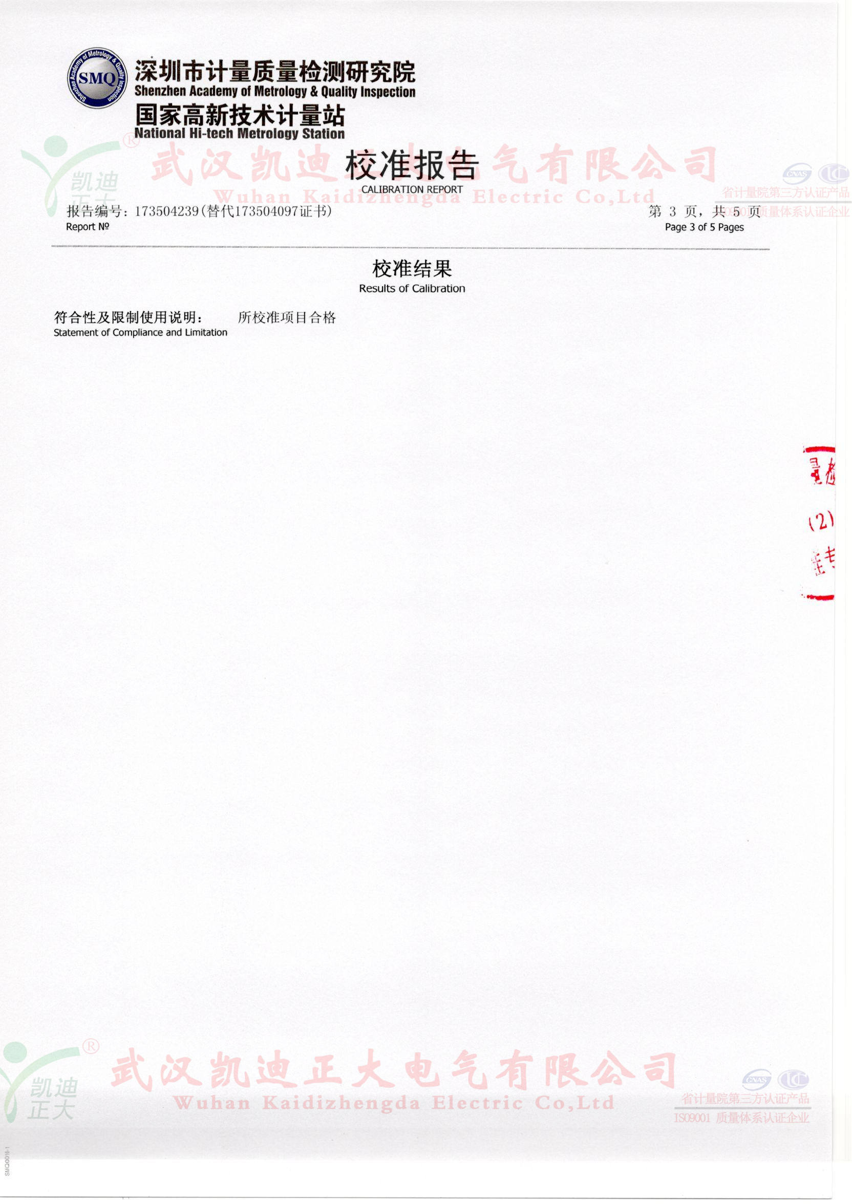 2015年6月KDZD880蓄電池智能放電儀獲得中南院湖北省計量院校準報告:合格