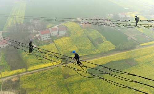 此次停電檢修從3月12日起,為期10天,參與檢修的輸電線路區段長134公里,有338座桿塔,是華中電網系統的骨干組成部分,承擔著南北電力互供的負荷分流重任。新華社記者郝同前攝