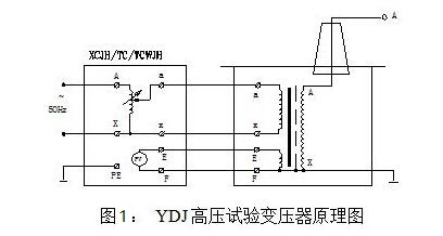 YDJ系列高壓試驗變壓器為單相變壓器,連結(jié)組I. I. 用工頻220V(10KVA以上為380V)電源接入(詳細資料請見其具體使用說明書)系列操作箱(臺),經(jīng)操作箱內(nèi)自耦調(diào)壓器(50KVA以上調(diào)壓器外附)調(diào)節(jié)至0-200V(或0-400V)電壓輸出至YDJ(試驗變壓器的初組繞組,根據(jù)電磁感應(yīng)原理,在高壓試驗變壓器高壓繞組可獲得試驗所需的高電壓。