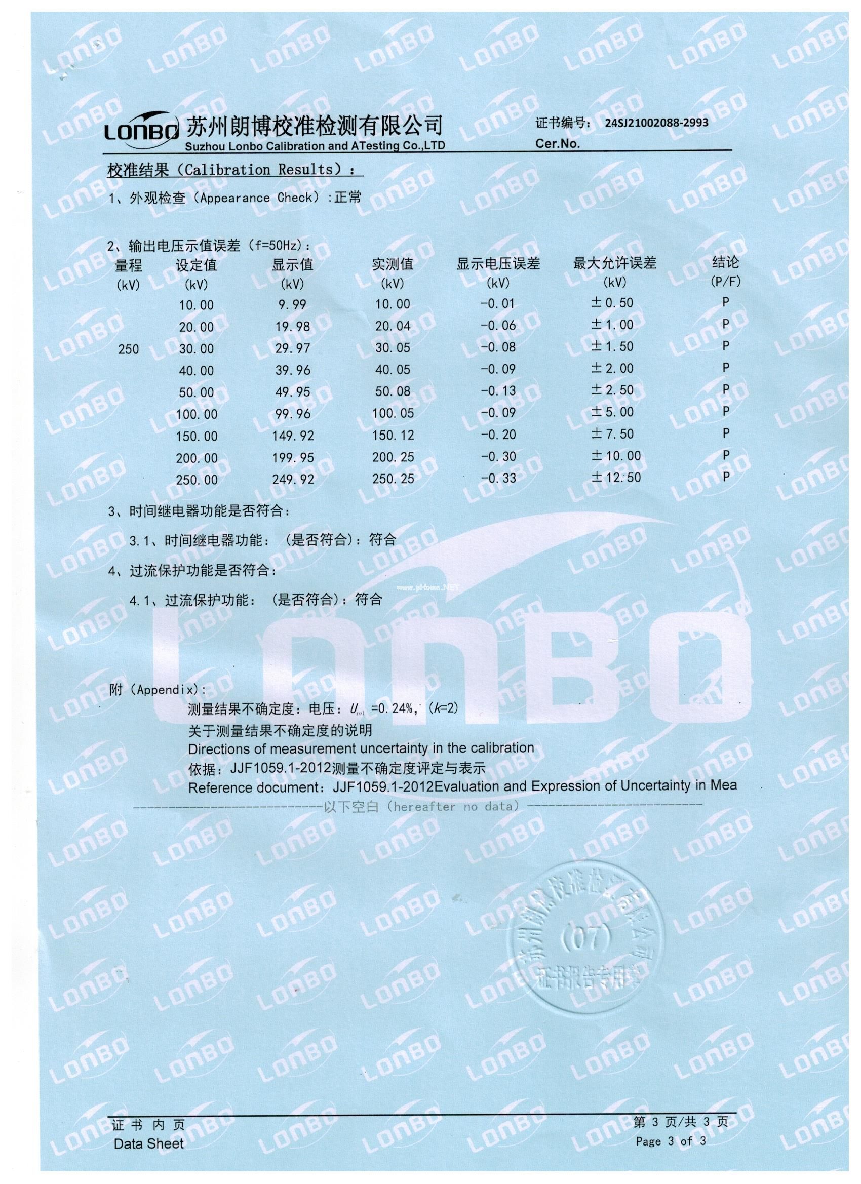 依據《中華人民共和國合同法》,本著平等互利的原則,經福建寧德核電公司和武漢凱迪正大電氣雙方友好協商,共同達成如下協議:福建寧德核電公司采購凱迪正大KDGTB-30KVA100KV工頻耐壓試驗裝置,并由甲方委托蘇州朗博校準檢測有限公司出具檢測報告。