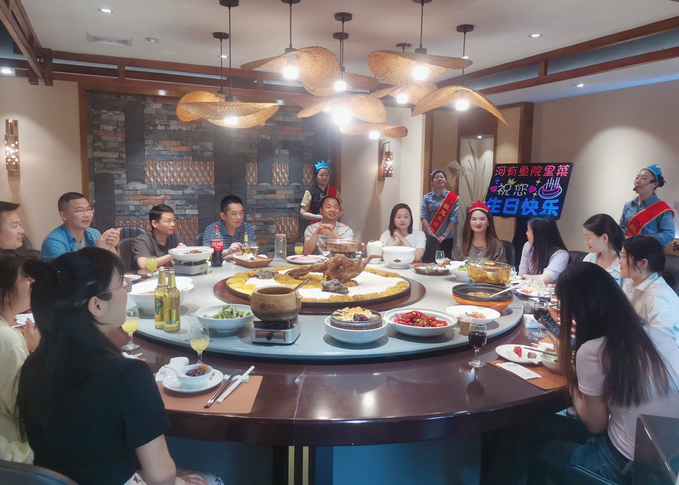 聚餐于近日在公司附近的河有魚·院里菜飯店(徑河店)隆重舉行,員工歡聚一堂,共同為這個月過生日的壽星慶祝生日。選擇這一家很有特色的餐廳,據說是網紅打卡圣地,被她們家的環境吸引而來,裝修風格屬于田園式餐廳,十分溫馨。