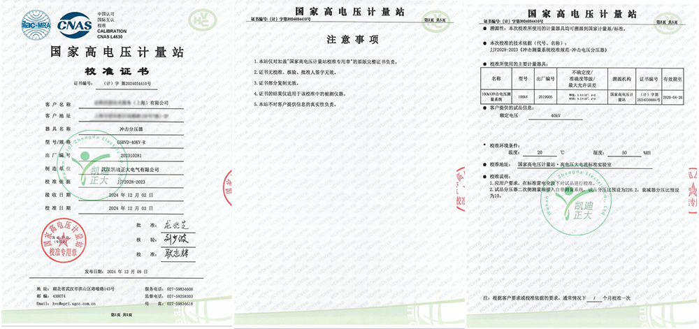 武漢凱迪正大脈沖電壓測試設備的沖擊分壓器通過國家高電壓計量站的校準,證明了其的技術實力,驗證了其測量精度和穩定性的能力,標志著該設備在電力設備絕緣性能檢測領域達到的標準。