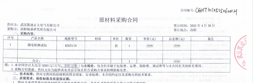 近日,洛陽軸承研究所有限公司經(jīng)過嚴格篩選與深入考察,最終決定采購信賴武漢凱迪正大,采購了KD2511N微電阻測試儀。此次合作不僅彰顯了客戶對武漢凱迪正大品牌的深度信賴,也驗證了KD2511N微電阻測試儀在市場上的表現(xiàn)與廣泛認可。